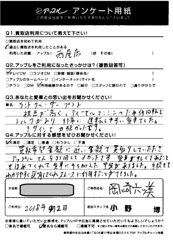 買取希望金額に近い金額で買取していただきアップルさんを利用してよかったです。愛車がキレイであることもほめてくれて愛車に手を加えたかいがありました。手続きもわかりやすく説明してくれてスムーズに利用することができました。