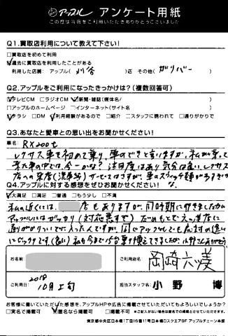 私の近くには、**店もありますが、同時期に行きましたがアップルにはガッカリ(対応悪すぎ)だめもとで六ッ美店に通りすがりついでに入ったんですが、同じアップルでも対応の違いにびっくりです。(良い)私も今まで15台乗り換えてきましたが、小野さんありがとう。