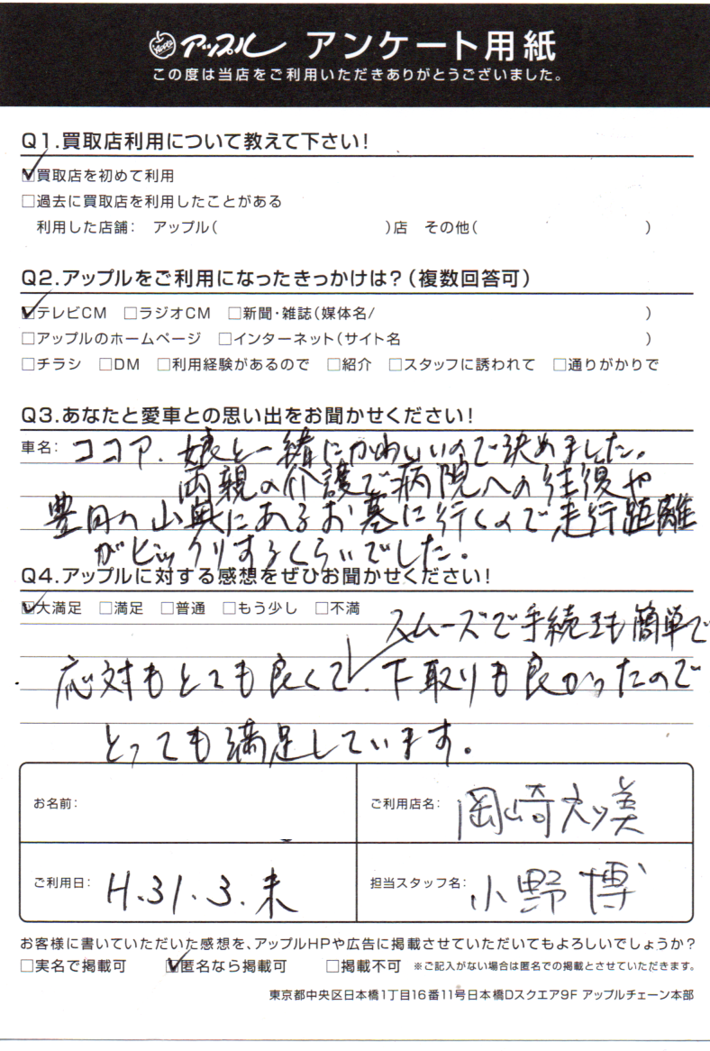 応対がとても良くてスムーズで手続きも簡単で、下取りも良かったのでとっても満足しています。