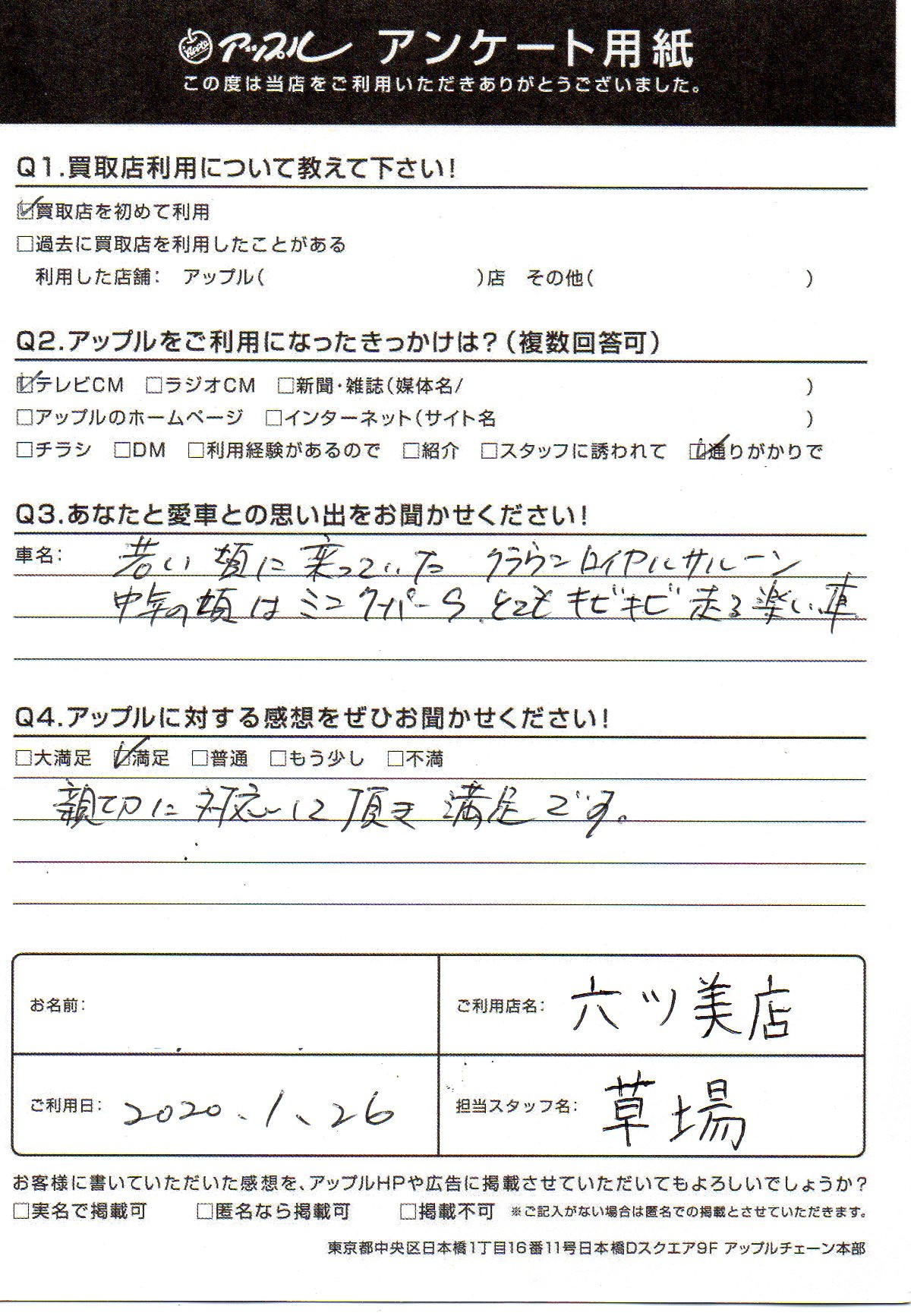 お車のご相談・ 査定だけでもOK! カンタン 入力 30秒 アップルがブランド買取始めました! お電話でも受付中! 受付時間10:00 ~ 19:00 (第4・第5月曜日は18:00閉店の場合あり) 0564-58-1700 お車のご相談・ 査定だけでもOK! カンタン 入力 30秒 アップルがブランド買取始めました! お電話でも受付中! 受付時間10:00 ~ 19:00 (第4・第5月曜日は18:00閉店の場合あり) 0564-58-1700 アップルがブランド買取始めました! お電話でも受付中! 受付時間10:00 ~ 19:00 (第4・第5月曜日は18:00閉店の場合あり) 0564-58-1700 店舗情報 在庫車 スタッフ紹介 ブログ お客様の声 キャンペーン 無料査定 click お客様の声 ご記入日: 2020/01/26 愛知県 匿名希望様 親切に対応して頂き満足です。 前へ 次へ お客様の声一覧を見る