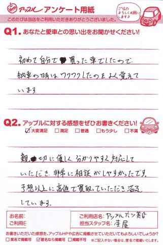 お車のご相談・ 査定だけでもOK! カンタン 入力 30秒 アップルがブランド買取始めました! お電話でも受付中! 受付時間10:00 ~ 19:00 (第4・第5月曜日は18:00閉店の場合あり) 0564-58-1700 お車のご相談・ 査定だけでもOK! カンタン 入力 30秒 アップルがブランド買取始めました! お電話でも受付中! 受付時間10:00 ~ 19:00 (第4・第5月曜日は18:00閉店の場合あり) 0564-58-1700 アップルがブランド買取始めました! お電話でも受付中! 受付時間10:00 ~ 19:00 (第4・第5月曜日は18:00閉店の場合あり) 0564-58-1700 店舗情報 在庫車 スタッフ紹介 ブログ お客様の声 キャンペーン 無料査定 click お客様の声 ご記入日: 2013/05/19 K様 親切に優しく、分りやすく対応していただき、非常に相談しやすかったです。予想以上に高値で買取っていただき満足しています。 前へ 次へ お客様の声一覧を見る
