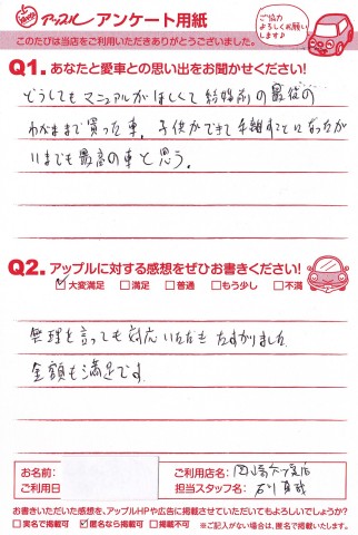 お車のご相談・ 査定だけでもOK! カンタン 入力 30秒 アップルがブランド買取始めました! お電話でも受付中! 受付時間10:00 ~ 19:00 (第4・第5月曜日は18:00閉店の場合あり) 0564-58-1700 お車のご相談・ 査定だけでもOK! カンタン 入力 30秒 アップルがブランド買取始めました! お電話でも受付中! 受付時間10:00 ~ 19:00 (第4・第5月曜日は18:00閉店の場合あり) 0564-58-1700 アップルがブランド買取始めました! お電話でも受付中! 受付時間10:00 ~ 19:00 (第4・第5月曜日は18:00閉店の場合あり) 0564-58-1700 店舗情報 在庫車 スタッフ紹介 ブログ お客様の声 キャンペーン 無料査定 click お客様の声 ご記入日: 2013/06/02 T様 無理を言っても対応いただきたすかりました。金額も満足です。 前へ 次へ お客様の声一覧を見る