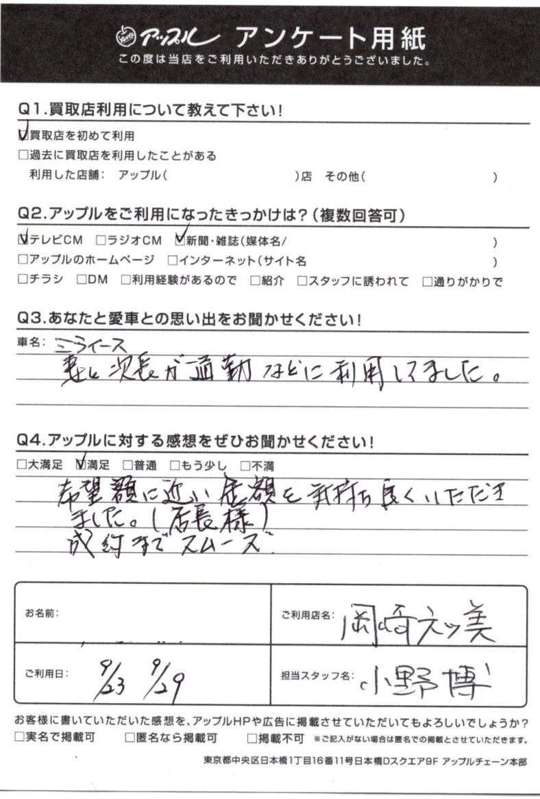 お車のご相談・ 査定だけでもOK! カンタン 入力 30秒 アップルがブランド買取始めました! お電話でも受付中! 受付時間10:00 ~ 19:00 (第4・第5月曜日は18:00閉店の場合あり) 0564-58-1700 お車のご相談・ 査定だけでもOK! カンタン 入力 30秒 アップルがブランド買取始めました! お電話でも受付中! 受付時間10:00 ~ 19:00 (第4・第5月曜日は18:00閉店の場合あり) 0564-58-1700 アップルがブランド買取始めました! お電話でも受付中! 受付時間10:00 ~ 19:00 (第4・第5月曜日は18:00閉店の場合あり) 0564-58-1700 店舗情報 在庫車 スタッフ紹介 ブログ お客様の声 キャンペーン 無料査定 click お客様の声 ご記入日: 2020/09/29 愛知県 匿名希望様 車名:ダイハツ ミライース 希望額に近い金額を気持ちよくいただきました(店長様)。成約までスムーズ。 前へ 次へ お客様の声一覧を見る
