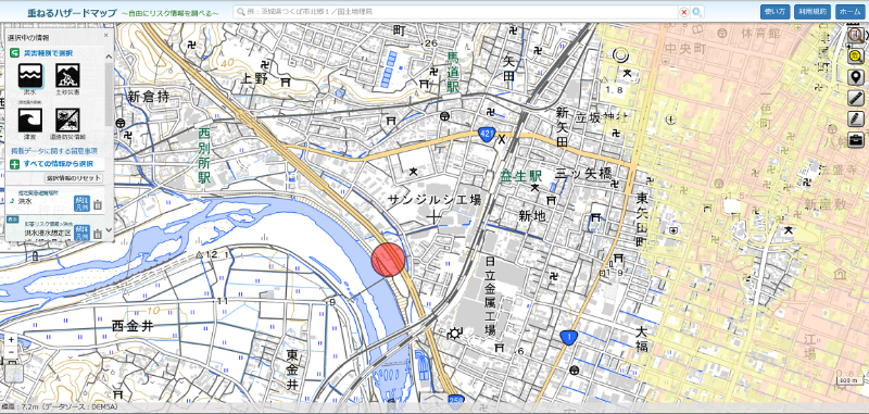 重ねるハザードマップなるものがなかなかの優れもの!