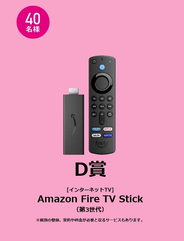 D賞:Amazon Fire TV Stick(第3世代)