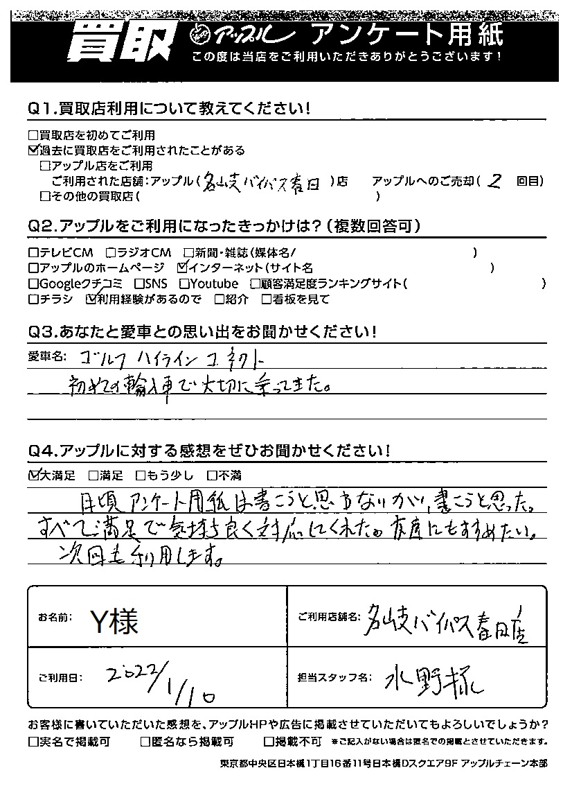 Y様 車名:フォルクスワーゲン ゴルフ