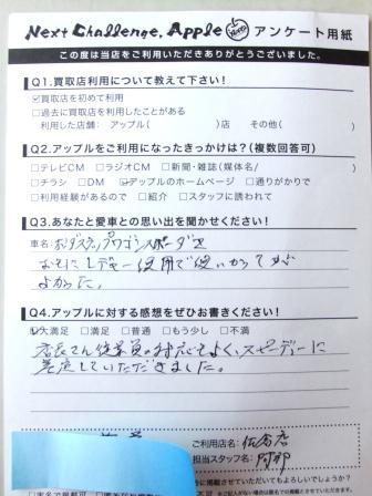 お車のご相談・ 査定だけでもOK! カンタン 入力 30秒 アップルがブランド買取始めました! お電話でも受付中! 受付時間10:00 ~ 18:30 0120-978-553 お車のご相談・ 査定だけでもOK! カンタン 入力 30秒 アップルがブランド買取始めました! お電話でも受付中! 受付時間10:00 ~ 18:30 0120-978-553 アップルがブランド買取始めました! お電話でも受付中! 受付時間10:00 ~ 18:30 0120-978-553 店舗情報 在庫車 スタッフ紹介 ブログ お客様の声 キャンペーン お得 無料査定 click お客様の声 ご記入日: 2015/10/10 I様 ★愛車との思い出(ステップワゴン スパーダ)おもにレジャーで使い勝手が良かった。★アップルに対する感想店長さん従業員の対応もよく、スピーディに査定していただきました。 前へ 次へ お客様の声一覧を見る