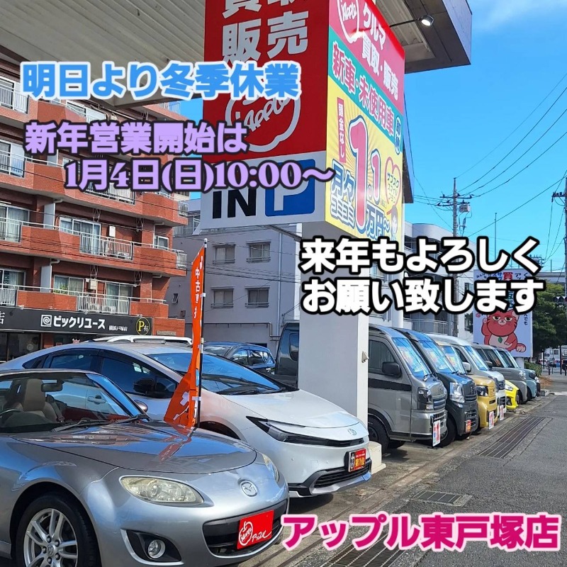 お車のご相談・ 査定だけでもOK! カンタン 入力 30秒 アップルがブランド買取始めました! お電話でも受付中! 受付時間10:00 ~ 19:00 045-828-2588 お車のご相談・ 査定だけでもOK! カンタン 入力 30秒 アップルがブランド買取始めました! お電話でも受付中! 受付時間10:00 ~ 19:00 045-828-2588 アップルがブランド買取始めました! お電話でも受付中! 受付時間10:00 ~ 19:00 045-828-2588 店舗情報 在庫車 スタッフ紹介 ブログ お客様の声 キャンペーン お得 無料査定 click [ 未分類 ] 2025/12/26 (金) 18:44 アップル東戸塚店 今年もありがとうございました。 アップル東戸塚店今年もたくさんのご来店、お問い合わせありがとうございます。おかげさまでたくさんのご縁を頂きまして、大変良い年となりました🙇今年も関わって頂いた全ての方々に感謝致します。そして令和7年、当店の営業も本日までとなります。お車ご相談の方は年が明けてから新年令和8年、お待ちしております。来年も当店は全力で駆け抜けます❕車売るのも買うのもぜひ当店にご相談下さいませ❕新年令和8年は1月4日からの営業となります。今年も残りあとわずかですが皆様良いお年を😌それでは来年もアップル東戸塚店を何卒よろしくお願い致します。 2025-12-26 18:44:30 新しい記事へ 古い記事へ 最新記事 ぷくぷくシール☆春の風決算期☆続々入庫車ございます!アップル東戸塚店最新の入庫情報!アップルロングキャンペーンまだまだ開催中! 店舗情報に戻る 月別アーカイブ 2026年04月(1)2026年03月(1)2026年02月(1)2026年01月(4)2025年12月(3)2025年11月(2)2025年10月(3)2025年09月(2)2025年08月(2)2025年07月(1)2025年06月(1)2025年05月(2)2025年04月(2)2025年03月(1)2025年02月(2)2025年01月(2)2024年12月(1)2024年11月(2)2024年10月(3)2024年09月(2)2024年07月(1)2024年06月(2)2024年05月(1)2024年04月(2)2024年03月(1)2024年02月(2)2024年01月(1)2023年12月(2)2023年11月(2)2023年10月(3)2023年09月(1)2023年08月(3)2023年07月(1)2023年06月(2)2023年04月(2)2023年02月(3)2023年01月(1)2022年12月(2)2022年11月(3)2022年10月(3)2022年09月(1)2022年08月(1)2022年07月(2)2022年06月(1)2022年05月(1)2022年04月(1)2022年03月(1)2022年02月(2)2022年01月(1)2021年12月(3)2021年10月(2)2021年09月(1)2021年08月(1)2021年07月(1)2021年06月(1)2021年04月(2)2021年03月(1)2021年02月(1)2021年01月(2)2020年12月(2)2020年11月(1)2020年10月(2)2020年08月(1)2020年07月(1)2020年03月(1)2019年09月(1)2019年07月(2)