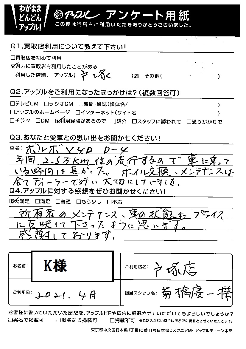 K様 車名:ボルボ V40