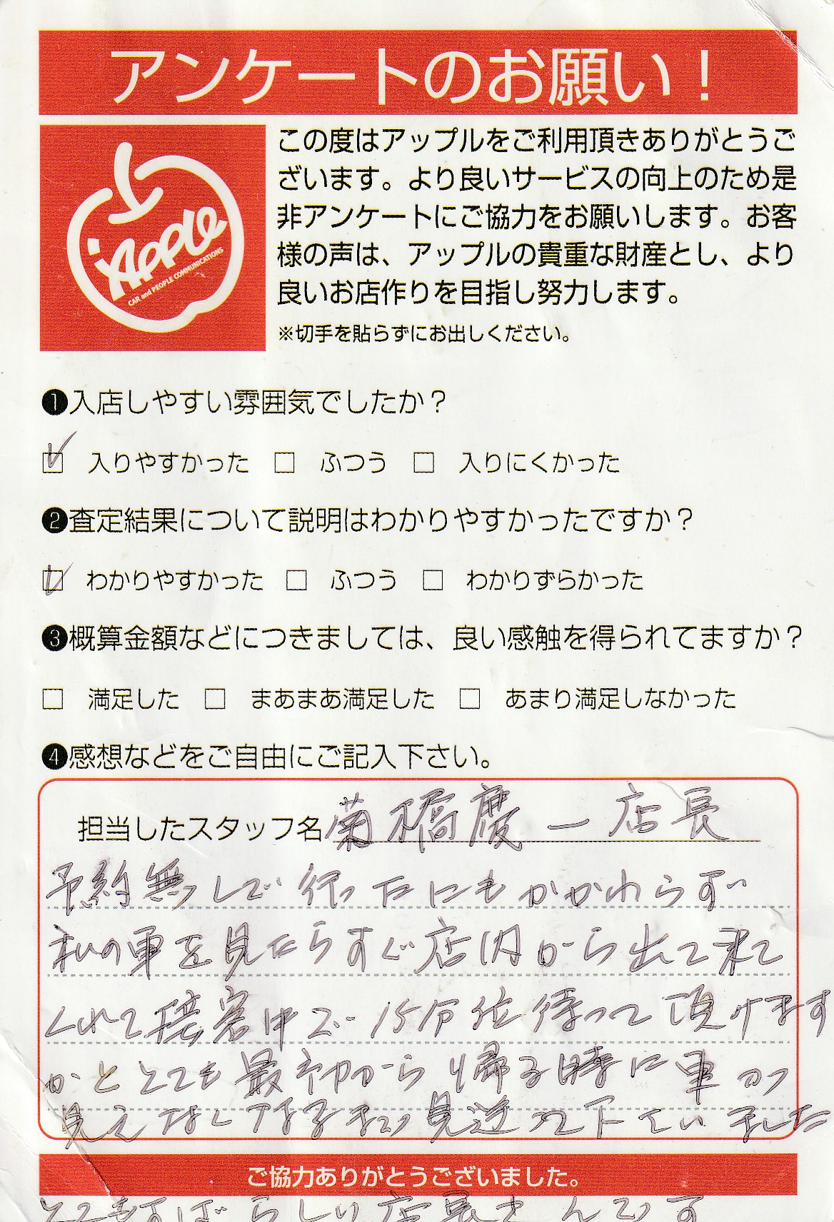 私の車を見たらすぐ店内から出てきてくれて