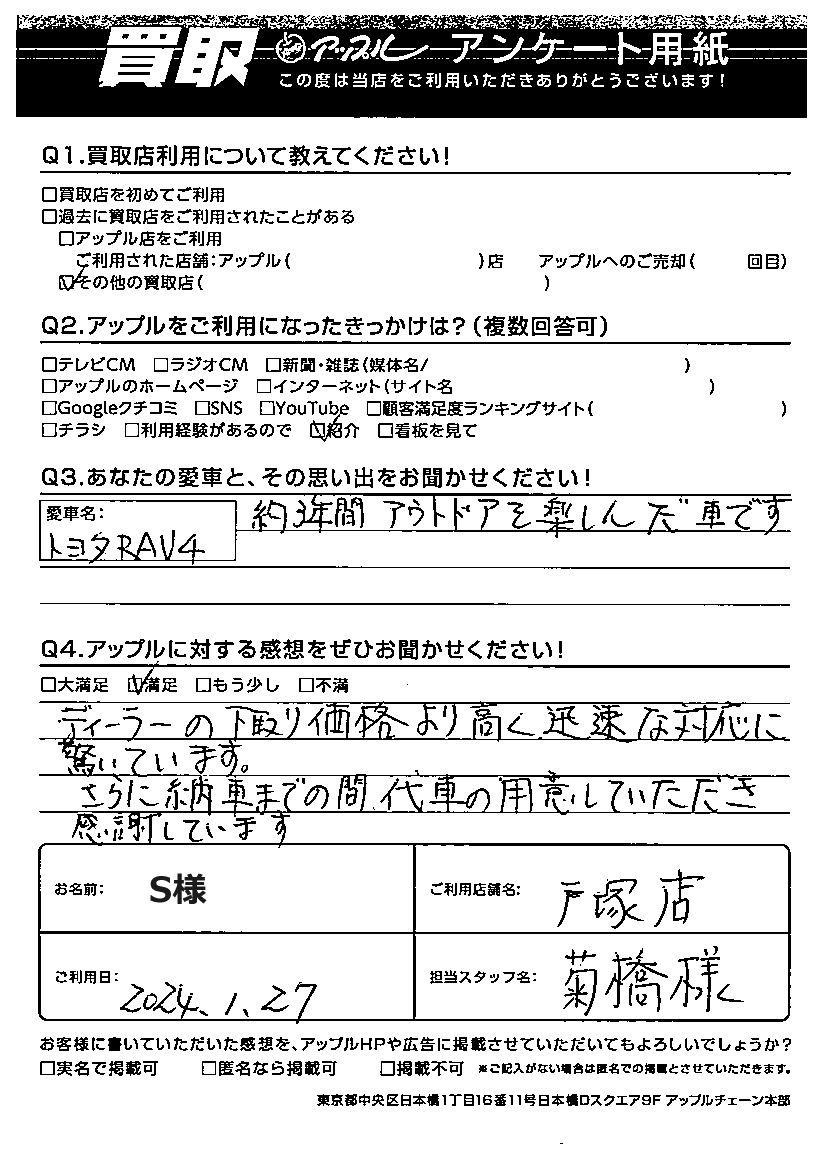 S様 車名:トヨタ RAV4(R04年10月~RAV4 PHV含む)