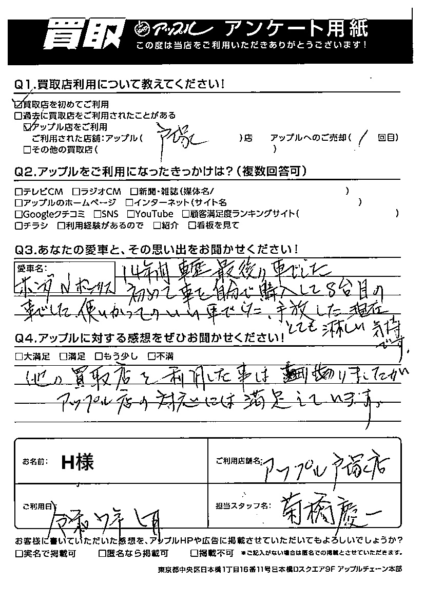 H様 車名:ホンダ N-BOX