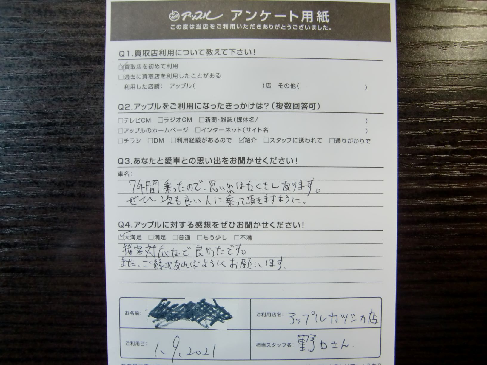 お車のご相談・ 査定だけでもOK! カンタン 入力 30秒 アップルがブランド買取始めました! お電話でも受付中! 受付時間10:00~19:00 03-6662-6181 お車のご相談・ 査定だけでもOK! カンタン 入力 30秒 アップルがブランド買取始めました! お電話でも受付中! 受付時間10:00~19:00 03-6662-6181 アップルがブランド買取始めました! お電話でも受付中! 受付時間10:00~19:00 03-6662-6181 店舗情報 在庫車 スタッフ紹介 ブログ お客様の声 キャンペーン 無料査定 click お客様の声 ご記入日: 2021/01/09 S様 車名:リンカーン ナビゲーター 前へ 次へ お客様の声一覧を見る