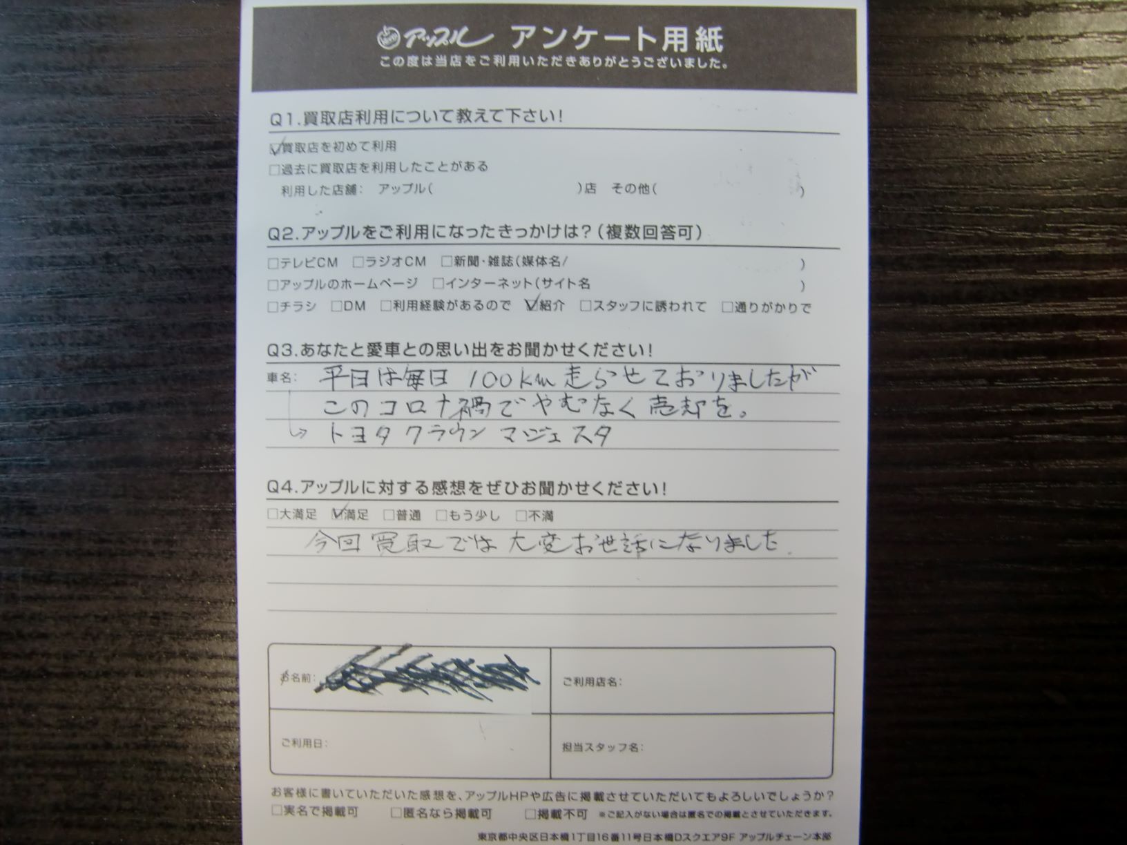 お車のご相談・ 査定だけでもOK! カンタン 入力 30秒 アップルがブランド買取始めました! お電話でも受付中! 受付時間10:00~19:00 03-6662-6181 お車のご相談・ 査定だけでもOK! カンタン 入力 30秒 アップルがブランド買取始めました! お電話でも受付中! 受付時間10:00~19:00 03-6662-6181 アップルがブランド買取始めました! お電話でも受付中! 受付時間10:00~19:00 03-6662-6181 店舗情報 在庫車 スタッフ紹介 ブログ お客様の声 キャンペーン 無料査定 click お客様の声 ご記入日: -/-/- K様 車名:トヨタ クラウンマジェスタ マジェスタ(クラウンマジェスタ) 前へ 次へ お客様の声一覧を見る