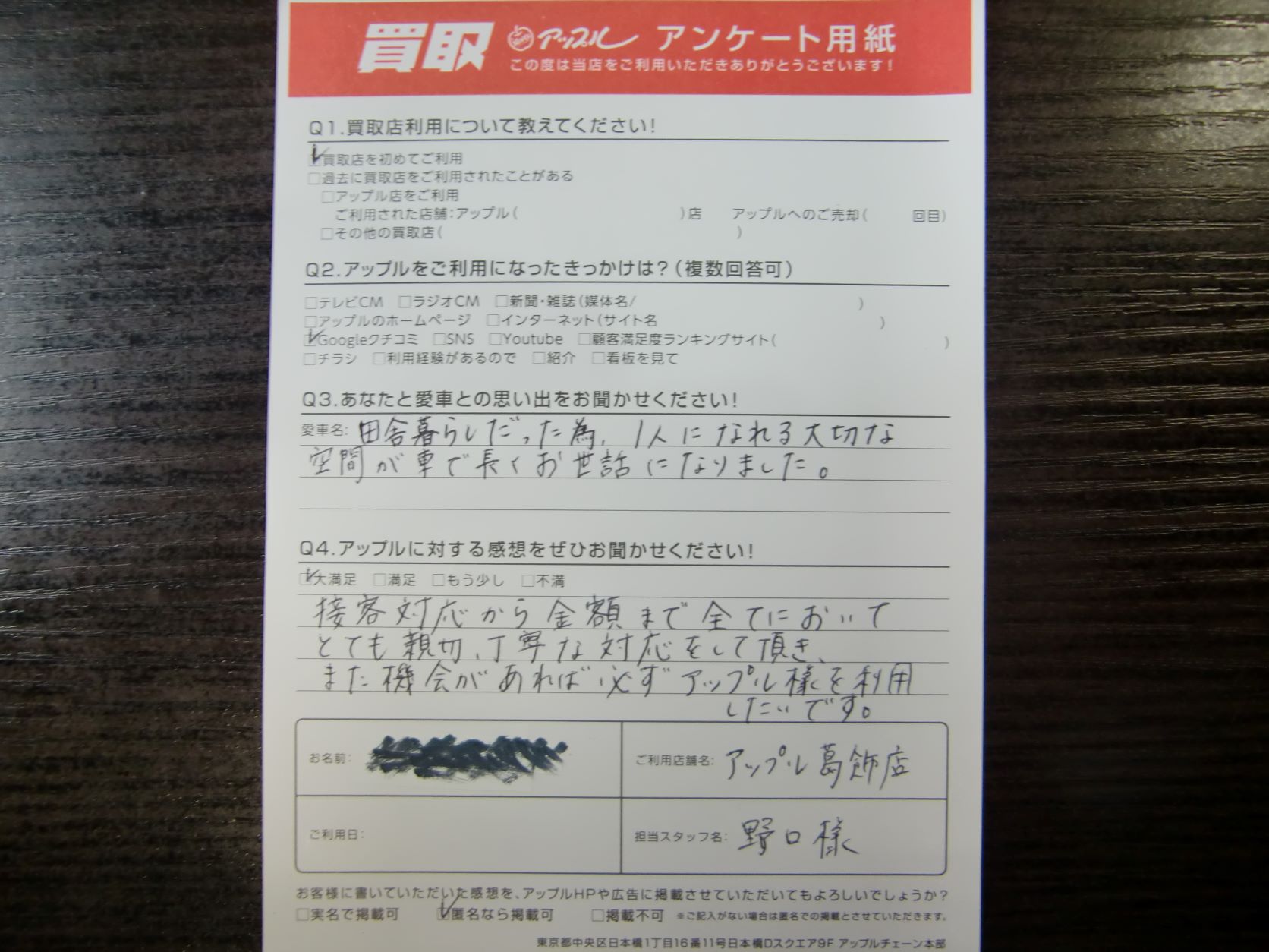 お車のご相談・ 査定だけでもOK! カンタン 入力 30秒 アップルがブランド買取始めました! お電話でも受付中! 受付時間10:00~19:00 03-6662-6181 お車のご相談・ 査定だけでもOK! カンタン 入力 30秒 アップルがブランド買取始めました! お電話でも受付中! 受付時間10:00~19:00 03-6662-6181 アップルがブランド買取始めました! お電話でも受付中! 受付時間10:00~19:00 03-6662-6181 店舗情報 在庫車 スタッフ紹介 ブログ お客様の声 キャンペーン 無料査定 click お客様の声 ご記入日: 2022/05/14 K様 車名:トヨタ ノア 前へ 次へ お客様の声一覧を見る