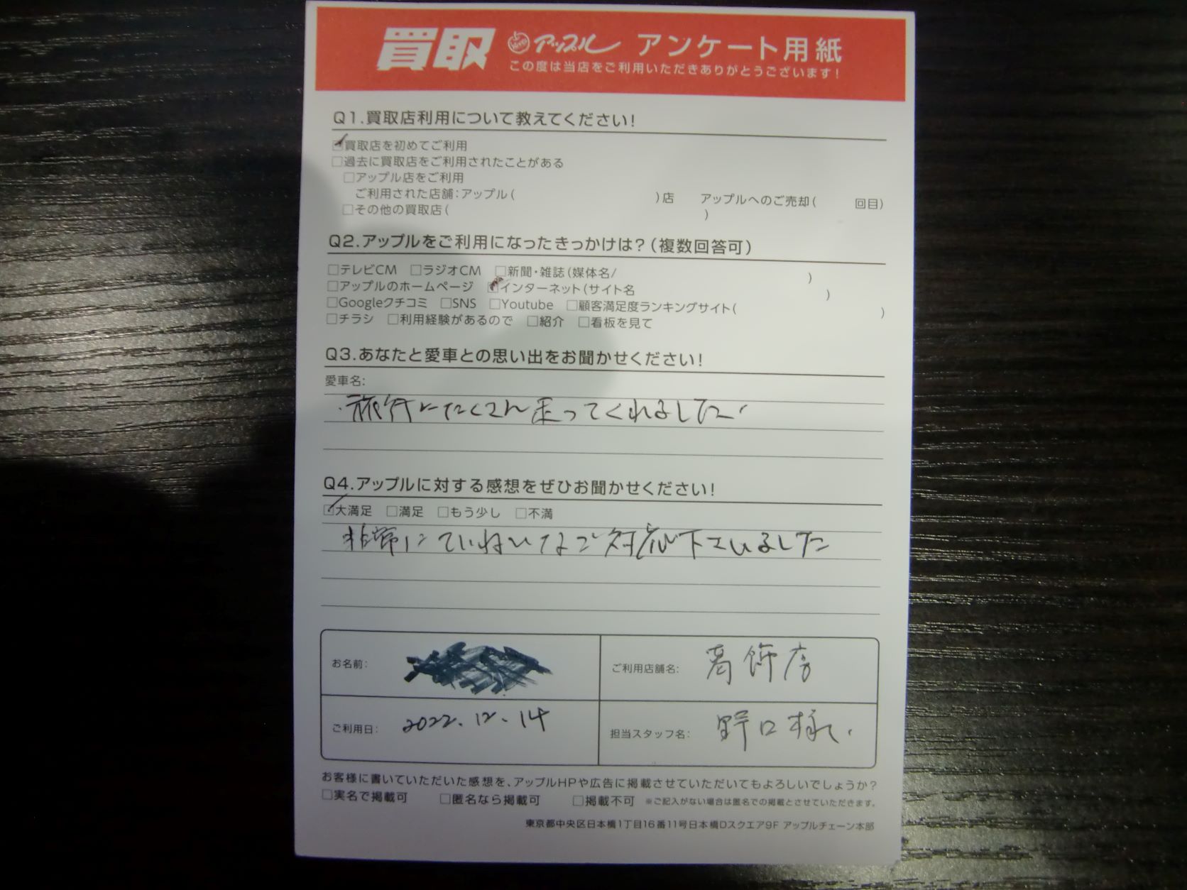 お車のご相談・ 査定だけでもOK! カンタン 入力 30秒 アップルがブランド買取始めました! お電話でも受付中! 受付時間10:00~19:00 03-6662-6181 お車のご相談・ 査定だけでもOK! カンタン 入力 30秒 アップルがブランド買取始めました! お電話でも受付中! 受付時間10:00~19:00 03-6662-6181 アップルがブランド買取始めました! お電話でも受付中! 受付時間10:00~19:00 03-6662-6181 店舗情報 在庫車 スタッフ紹介 ブログ お客様の声 キャンペーン 無料査定 click お客様の声 ご記入日: 2022/12/14 K様 車名:ホンダ フリードスパイク 前へ 次へ お客様の声一覧を見る