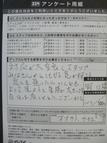 お車のご相談・ 査定だけでもOK! カンタン 入力 30秒 アップルがブランド買取始めました! お電話でも受付中! 受付時間10:00~19:00 03-6662-6181 お車のご相談・ 査定だけでもOK! カンタン 入力 30秒 アップルがブランド買取始めました! お電話でも受付中! 受付時間10:00~19:00 03-6662-6181 アップルがブランド買取始めました! お電話でも受付中! 受付時間10:00~19:00 03-6662-6181 店舗情報 在庫車 スタッフ紹介 ブログ お客様の声 キャンペーン 無料査定 click お客様の声 ご記入日: 2012/06/08 オオサト サカエ・ミツコ様 対応が大変良くスタッフみなさんがとても好意が持てる近くを通ったら、いつでもよって見ようと気持ちが大きいです今回は有りがとう、ございました 前へ 次へ お客様の声一覧を見る