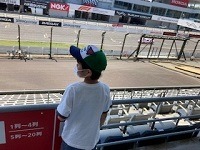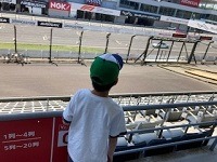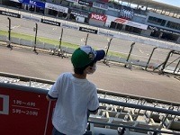 F1でも有名な国際レーシングコースを爆走する車を一生懸命に目で追う息子・・・