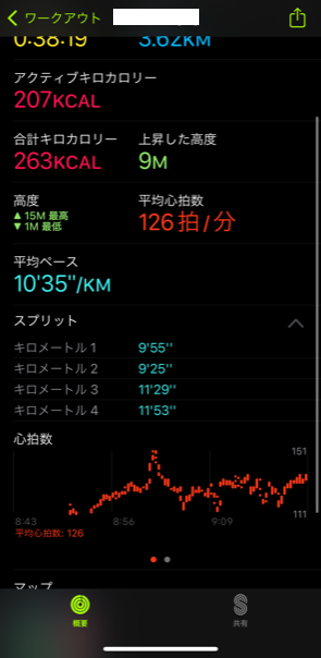 カロリーや時間、ペースがしっかり記録されているんです(゚д゚)!Wao!