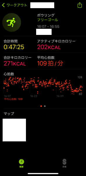 こちらはボウリングへ行った際の記録です(^^♪ (こちらも位置情報やマップは隠しております)
