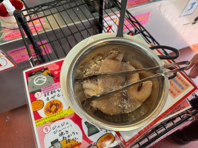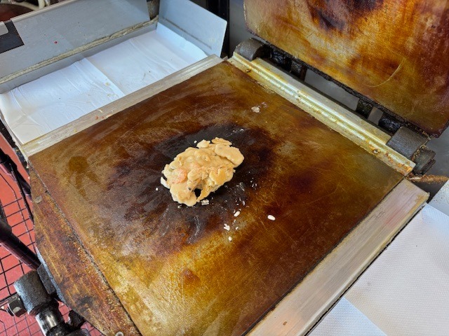 鉄板にのせて!(片栗粉が固くのせるのが難しいですが楽しいです(笑))