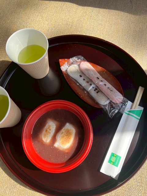 途中休憩にはぜんざいと安永餅のお呈茶セットを頂きました~!( *´艸`)