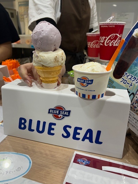 ちなみにブルーシールさんの沖縄でしか販売されていないしおちんすこう味と紅芋味のアイスもしっかりと食べました(^^♪