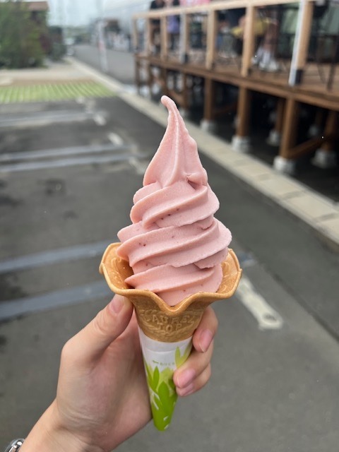 ストロベリーのソフトクリームなんですが、アイスが濃厚なんです!!