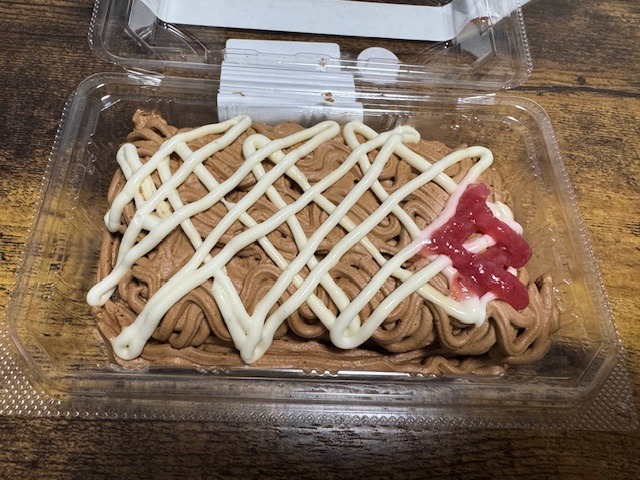 ケーキに乗っているミルクソースが焼きそばにかかるマヨネーズに見えていた事も甘い味にびっくりしたのではないでしょう( ´艸`)