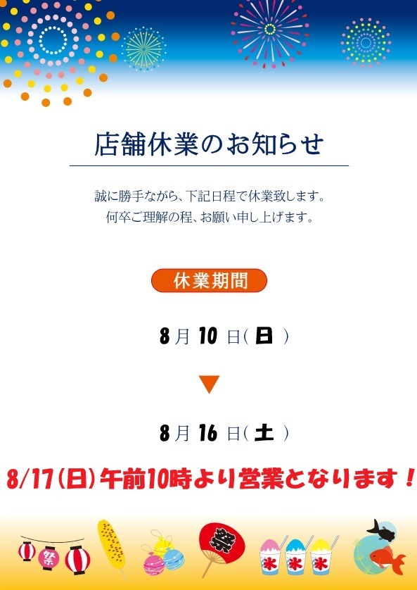 お車のご相談・ 査定だけでもOK! カンタン 入力 30秒 アップルがブランド買取始めました! お電話でも受付中! 受付時間10:00~19:00 ※毎週水曜定休日 052-508-9641 お車のご相談・ 査定だけでもOK! カンタン 入力 30秒 アップルがブランド買取始めました! お電話でも受付中! 受付時間10:00~19:00 ※毎週水曜定休日 052-508-9641 アップルがブランド買取始めました! お電話でも受付中! 受付時間10:00~19:00 ※毎週水曜定休日 052-508-9641 店舗情報 在庫車 スタッフ紹介 ブログ お客様の声 キャンペーン お得 無料査定 click [ 未分類 ] 2025/07/24 (木) 10:00 大切なお知らせ(*'ω'*) アップル黒川北41号店のブログをご覧の皆様こんにちは!副店長の塩道です!昨日は定休日を頂いておりましたが、本日よりまた元気いっぱい営業しております!是非お気軽にご来店・ご相談ください!さて、本日は大切なお知らせがございます!誠に勝手ながら8/10㈰~8/16㈯迄夏季休業とさせて頂きます。なお、8/17㈰午前10時より通常営業となります!皆様にはご迷惑をお掛けしますが宜しくお願い致します。以上お知らせブログでした~! 2025-07-24 10:00:00 新しい記事へ 古い記事へ 最新記事 ☆流行りのアイス!?☆GW休業のお知らせ!ベーコンポテトの!キャンペーンまだまだ開催中!みそきんシリーズの・・・! 店舗情報に戻る 月別アーカイブ 2026年04月(19)2026年03月(27)2026年02月(24)2026年01月(23)2025年12月(23)2025年11月(26)2025年10月(26)2025年09月(25)2025年08月(19)2025年07月(23)2025年06月(22)2025年05月(15)2025年04月(20)2025年03月(24)2025年02月(21)2025年01月(21)2024年12月(20)2024年11月(22)2024年10月(23)2024年09月(23)2024年08月(19)2024年07月(23)2024年06月(22)2024年05月(21)2024年04月(21)2024年03月(25)2024年02月(24)2024年01月(21)2023年12月(20)2023年11月(22)2023年10月(23)2023年09月(22)2023年08月(11)2023年07月(23)2023年06月(23)2023年05月(20)2023年04月(24)2023年03月(24)2023年02月(21)2023年01月(22)2022年12月(23)2022年11月(25)2022年10月(24)2022年09月(23)2022年08月(19)2022年07月(19)2022年06月(24)2022年05月(20)2022年04月(22)2022年03月(25)2022年02月(22)2022年01月(23)2021年12月(20)2021年11月(24)2021年10月(24)2021年09月(23)2021年08月(21)2021年07月(24)2021年06月(22)2021年05月(21)2021年04月(21)2021年03月(24)2021年02月(23)2021年01月(21)2020年12月(21)2020年11月(23)2020年10月(25)2020年09月(11)2020年08月(10)2020年07月(12)2020年06月(16)2020年05月(4)2020年04月(6)2020年03月(4)2020年02月(5)2020年01月(7)2019年12月(3)2019年11月(3)2019年10月(4)2019年09月(4)2019年08月(3)2019年07月(3)2019年06月(3)2019年05月(3)2019年04月(3)2019年03月(3)2019年02月(2)2019年01月(3)2018年12月(3)2018年11月(4)2018年10月(4)2018年09月(5)2018年08月(7)2018年07月(7)2018年06月(8)2018年05月(8)2018年04月(6)2018年03月(7)2018年02月(3)2018年01月(7)2017年12月(6)2017年11月(7)2017年10月(4)2017年09月(4)2017年08月(4)2017年07月(4)2017年06月(7)2017年05月(4)2017年04月(4)2017年03月(2)2017年02月(3)2017年01月(8)2016年12月(8)2016年11月(8)2016年10月(10)2016年09月(8)2016年08月(9)2016年07月(9)2016年06月(10)2016年05月(8)2016年04月(4)2016年03月(2)2016年02月(4)2016年01月(5)2015年12月(6)2015年11月(4)2015年10月(6)2015年09月(4)2015年08月(10)2015年07月(4)2015年06月(7)2015年05月(4)2015年04月(5)2015年03月(2)2015年02月(3)2015年01月(7)2014年12月(8)2014年11月(9)2014年10月(9)2014年09月(8)2014年08月(7)2014年07月(10)2014年06月(9)2014年05月(10)2014年04月(10)2014年03月(1)2014年02月(2)2014年01月(2)2013年12月(7)2013年11月(3)2013年10月(6)2013年09月(7)2013年08月(2)