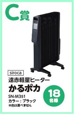 C賞:siroca 遠赤軽量ヒーター かるぽか 18名様
