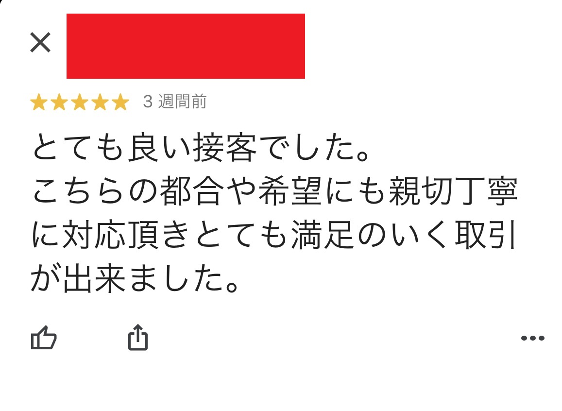 お車のご相談・ 査定だけでもOK! カンタン 入力 30秒 アップルがブランド買取始めました! お電話でも受付中! 受付時間10:00~19:00 ※毎週水曜定休日 052-508-9641 お車のご相談・ 査定だけでもOK! カンタン 入力 30秒 アップルがブランド買取始めました! お電話でも受付中! 受付時間10:00~19:00 ※毎週水曜定休日 052-508-9641 アップルがブランド買取始めました! お電話でも受付中! 受付時間10:00~19:00 ※毎週水曜定休日 052-508-9641 店舗情報 在庫車 スタッフ紹介 ブログ お客様の声 キャンペーン お得 無料査定 click お客様の声 ご記入日: 2021/02/07 匿名希望スカイライン様 車名:日産 スカイライン(セダン) とても良い接客でした。こちらの都合や希望にも親切丁寧に対応頂きとても満足のいく取引が出来ました。 前へ 次へ お客様の声一覧を見る
