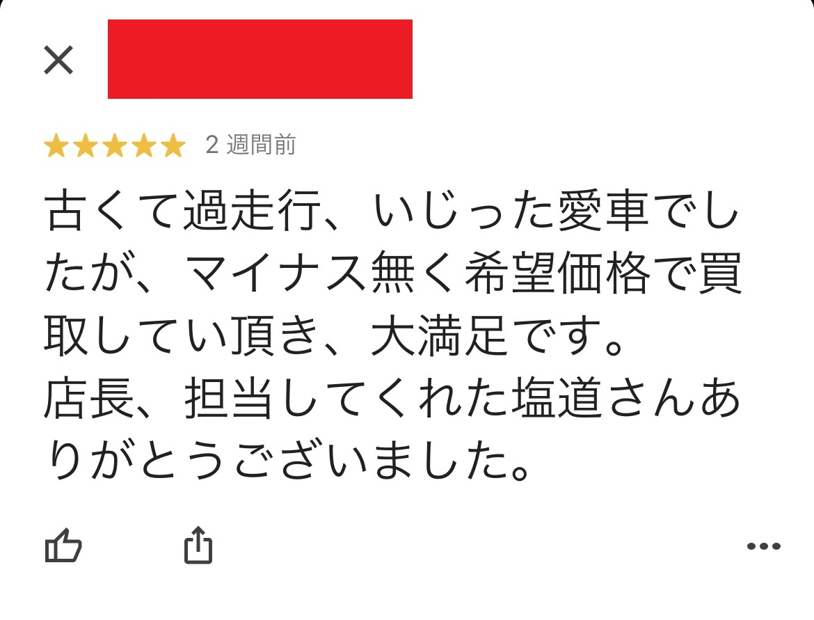お車のご相談・ 査定だけでもOK! カンタン 入力 30秒 アップルがブランド買取始めました! お電話でも受付中! 受付時間10:00~19:00 ※毎週水曜定休日 052-508-9641 お車のご相談・ 査定だけでもOK! カンタン 入力 30秒 アップルがブランド買取始めました! お電話でも受付中! 受付時間10:00~19:00 ※毎週水曜定休日 052-508-9641 アップルがブランド買取始めました! お電話でも受付中! 受付時間10:00~19:00 ※毎週水曜定休日 052-508-9641 店舗情報 在庫車 スタッフ紹介 ブログ お客様の声 キャンペーン お得 無料査定 click お客様の声 ご記入日: 2021/02/13 匿名希望ロードスター様 車名:マツダ ロードスター 古くて過走行、いじった愛車でしたが、マイナス無く希望価格で買取して頂き、大満足です。店長、担当してくれた塩道さんありがとうございました。 前へ 次へ お客様の声一覧を見る