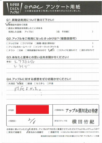 お車のご相談・ 査定だけでもOK! カンタン 入力 30秒 アップルがブランド買取始めました! お電話でも受付中! 受付時間10:00~19:00 ※毎週水曜定休日 052-508-9641 お車のご相談・ 査定だけでもOK! カンタン 入力 30秒 アップルがブランド買取始めました! お電話でも受付中! 受付時間10:00~19:00 ※毎週水曜定休日 052-508-9641 アップルがブランド買取始めました! お電話でも受付中! 受付時間10:00~19:00 ※毎週水曜定休日 052-508-9641 店舗情報 在庫車 スタッフ紹介 ブログ お客様の声 キャンペーン お得 無料査定 click お客様の声 ご記入日: 2021/02/06 匿名希望エクストレイル様 車名:日産 エクストレイル 対応良かった。 前へ 次へ お客様の声一覧を見る