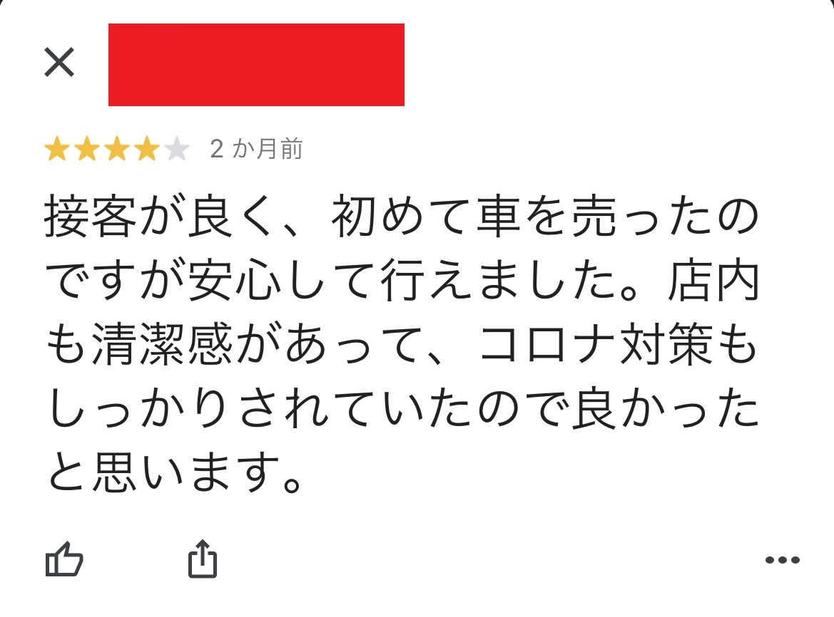 お車のご相談・ 査定だけでもOK! カンタン 入力 30秒 アップルがブランド買取始めました! お電話でも受付中! 受付時間10:00~19:00 ※毎週水曜定休日 052-508-9641 お車のご相談・ 査定だけでもOK! カンタン 入力 30秒 アップルがブランド買取始めました! お電話でも受付中! 受付時間10:00~19:00 ※毎週水曜定休日 052-508-9641 アップルがブランド買取始めました! お電話でも受付中! 受付時間10:00~19:00 ※毎週水曜定休日 052-508-9641 店舗情報 在庫車 スタッフ紹介 ブログ お客様の声 キャンペーン お得 無料査定 click お客様の声 ご記入日: 2021/03/16 匿名希望プレマシー様 車名:マツダ プレマシー 接客が良く、初めて車を売ったのですが安心して行えました。店内も清潔感があって、コロナ対策もしっかりされていたので良かったと思います。 前へ 次へ お客様の声一覧を見る