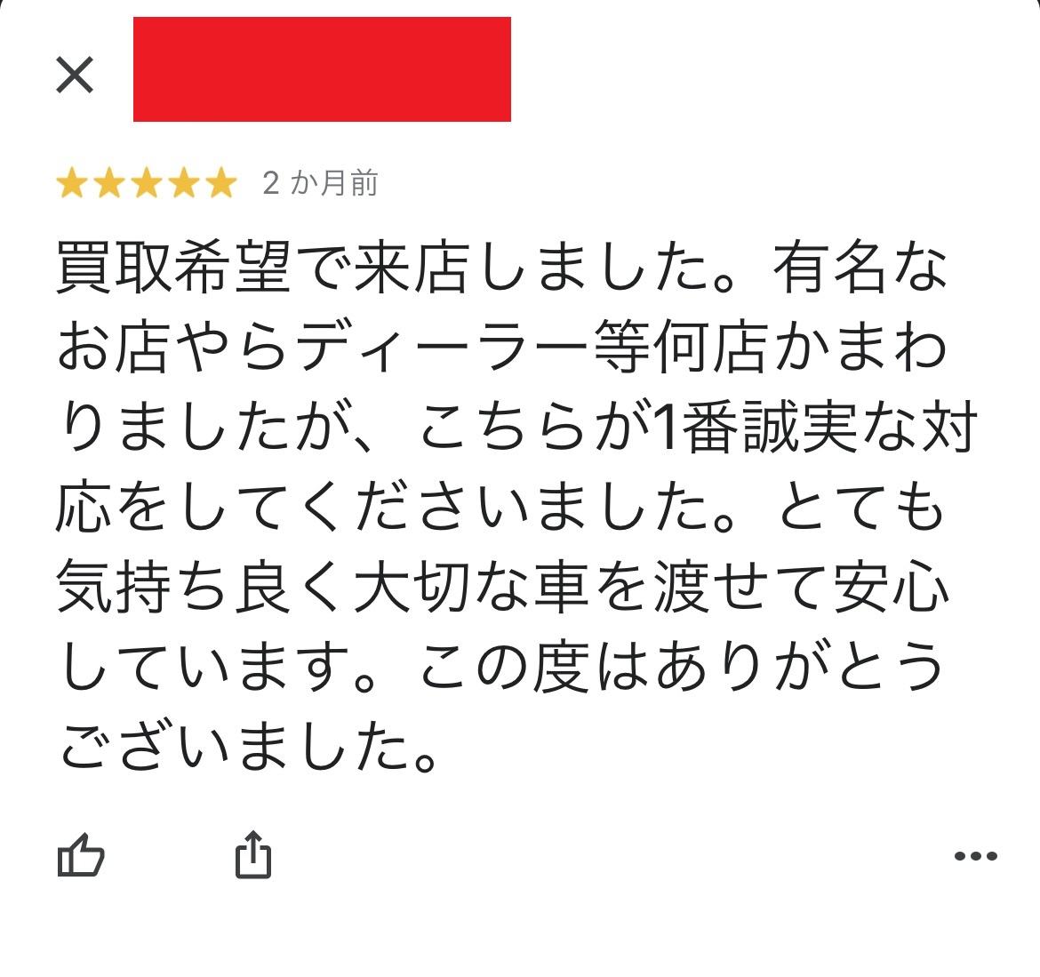 とても気持ち良く大切な車を渡せて安心しています。
