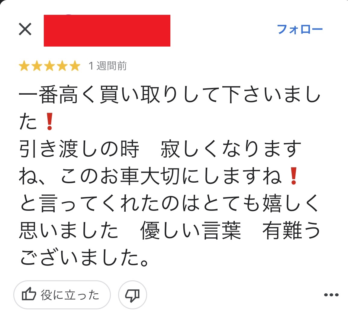 お車のご相談・ 査定だけでもOK! カンタン 入力 30秒 アップルがブランド買取始めました! お電話でも受付中! 受付時間10:00~19:00 ※毎週水曜定休日 052-508-9641 お車のご相談・ 査定だけでもOK! カンタン 入力 30秒 アップルがブランド買取始めました! お電話でも受付中! 受付時間10:00~19:00 ※毎週水曜定休日 052-508-9641 アップルがブランド買取始めました! お電話でも受付中! 受付時間10:00~19:00 ※毎週水曜定休日 052-508-9641 店舗情報 在庫車 スタッフ紹介 ブログ お客様の声 キャンペーン お得 無料査定 click お客様の声 ご記入日: 2021/11/23 匿名希望ノート様 車名:日産 ノート 一番高く買い取りして下さいました!引き渡しの時 寂しくなりますね、このお車大切にしますね!と言ってくれたのはとても嬉しく思いました。優しい言葉 有難うございました。 前へ 次へ お客様の声一覧を見る