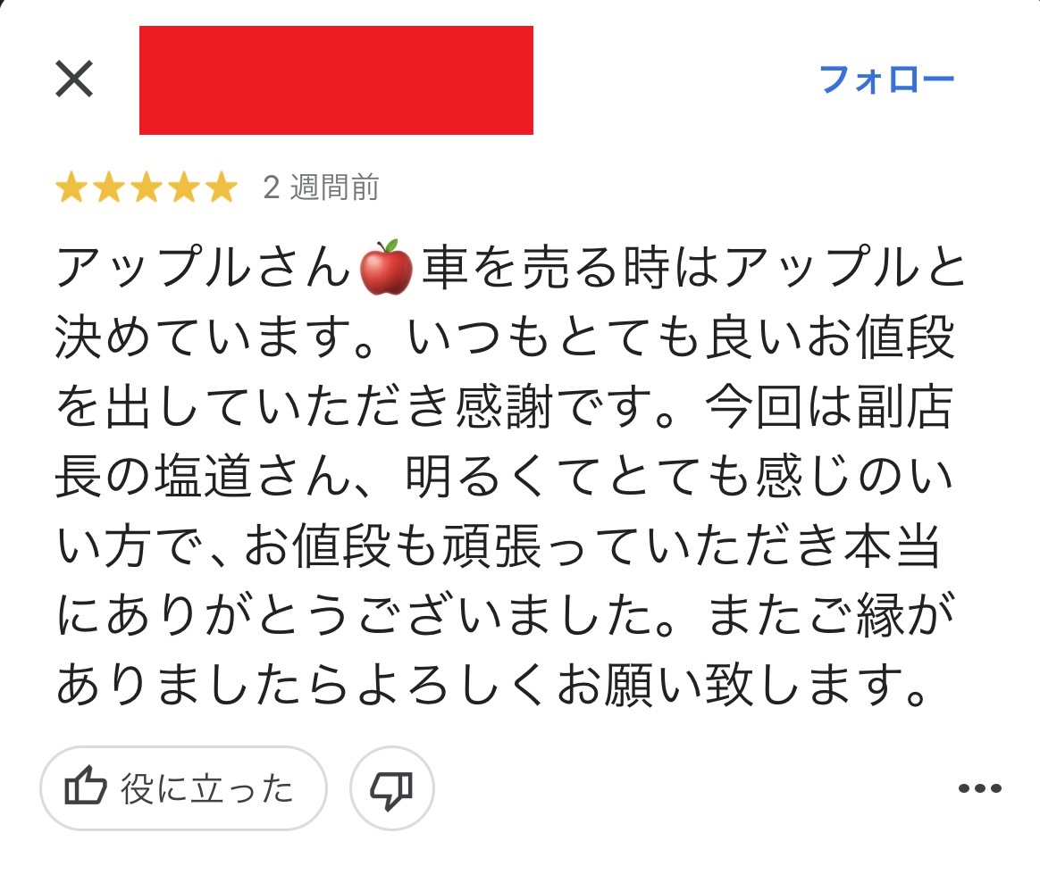 アップルさん車を売る時はアップルと決めています。