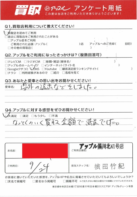 お車のご相談・ 査定だけでもOK! カンタン 入力 30秒 アップルがブランド買取始めました! お電話でも受付中! 受付時間10:00~19:00 ※毎週水曜定休日 052-508-9641 お車のご相談・ 査定だけでもOK! カンタン 入力 30秒 アップルがブランド買取始めました! お電話でも受付中! 受付時間10:00~19:00 ※毎週水曜定休日 052-508-9641 アップルがブランド買取始めました! お電話でも受付中! 受付時間10:00~19:00 ※毎週水曜定休日 052-508-9641 店舗情報 在庫車 スタッフ紹介 ブログ お客様の声 キャンペーン お得 無料査定 click お客様の声 ご記入日: 2022/09/24 匿名希望ストリーム様 車名:ホンダ ストリーム 県外の遠出などをしました。なっとくのいく買取金額で満足でした。 前へ 次へ お客様の声一覧を見る
