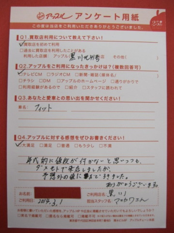 お車のご相談・ 査定だけでもOK! カンタン 入力 30秒 アップルがブランド買取始めました! お電話でも受付中! 受付時間10:00~19:00 ※毎週水曜定休日 052-508-9641 お車のご相談・ 査定だけでもOK! カンタン 入力 30秒 アップルがブランド買取始めました! お電話でも受付中! 受付時間10:00~19:00 ※毎週水曜定休日 052-508-9641 アップルがブランド買取始めました! お電話でも受付中! 受付時間10:00~19:00 ※毎週水曜定休日 052-508-9641 店舗情報 在庫車 スタッフ紹介 ブログ お客様の声 キャンペーン お得 無料査定 click お客様の声 ご記入日: 2014/03/01 A.R様 年式的に値段が付かないと思いつつもダメもとで来店しましたが、予想以上の値に驚きました。ありがとうございます。 前へ 次へ お客様の声一覧を見る