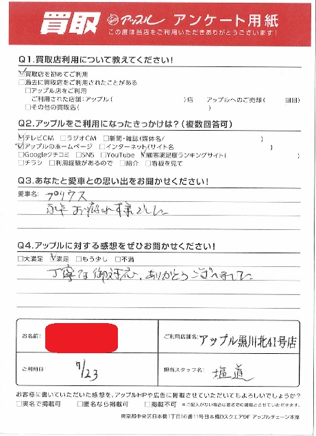 お車のご相談・ 査定だけでもOK! カンタン 入力 30秒 アップルがブランド買取始めました! お電話でも受付中! 受付時間10:00~19:00 ※毎週水曜定休日 052-508-9641 お車のご相談・ 査定だけでもOK! カンタン 入力 30秒 アップルがブランド買取始めました! お電話でも受付中! 受付時間10:00~19:00 ※毎週水曜定休日 052-508-9641 アップルがブランド買取始めました! お電話でも受付中! 受付時間10:00~19:00 ※毎週水曜定休日 052-508-9641 店舗情報 在庫車 スタッフ紹介 ブログ お客様の声 キャンペーン お得 無料査定 click お客様の声 ご記入日: 2023/07/23 匿名希望プリウス様 車名:トヨタ プリウス(2023年3月~のPHVを含む) 永年お疲れ様でした。丁寧な御対応ありがとうございました。 前へ 次へ お客様の声一覧を見る