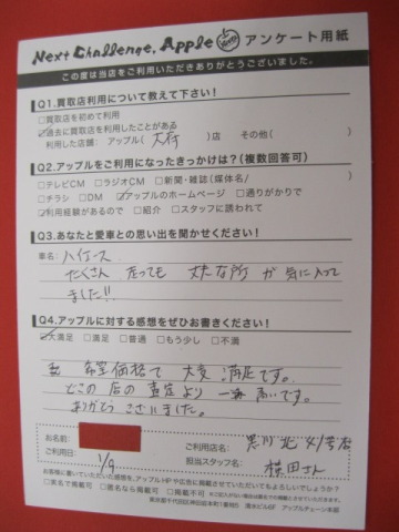 お車のご相談・ 査定だけでもOK! カンタン 入力 30秒 アップルがブランド買取始めました! お電話でも受付中! 受付時間10:00~19:00 ※毎週水曜定休日 052-508-9641 お車のご相談・ 査定だけでもOK! カンタン 入力 30秒 アップルがブランド買取始めました! お電話でも受付中! 受付時間10:00~19:00 ※毎週水曜定休日 052-508-9641 アップルがブランド買取始めました! お電話でも受付中! 受付時間10:00~19:00 ※毎週水曜定休日 052-508-9641 店舗情報 在庫車 スタッフ紹介 ブログ お客様の声 キャンペーン お得 無料査定 click お客様の声 ご記入日: 2015/01/09 M.S様 希望価格で大変満足です。どこの店の査定より一番高いです。ありがとうございました。 前へ 次へ お客様の声一覧を見る