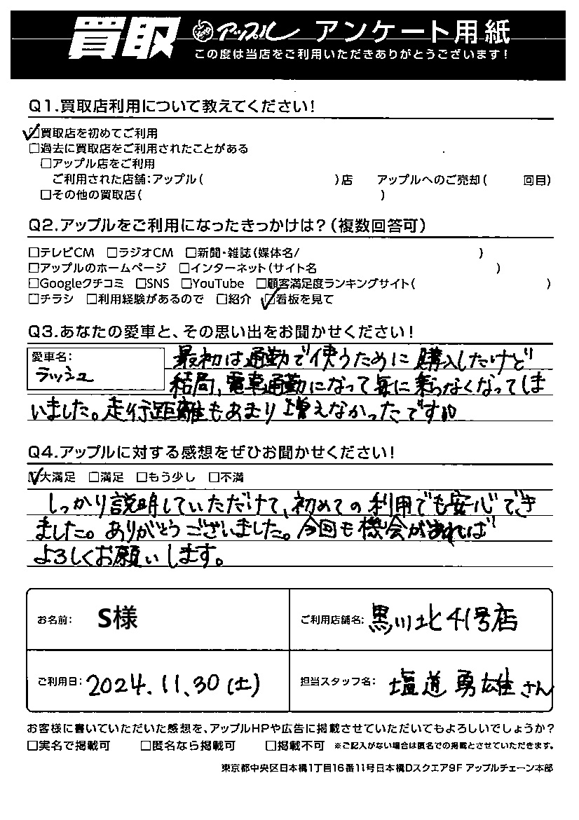 しっかり説明していただけて、初めての利用でも安心できました。ありがとうございました。