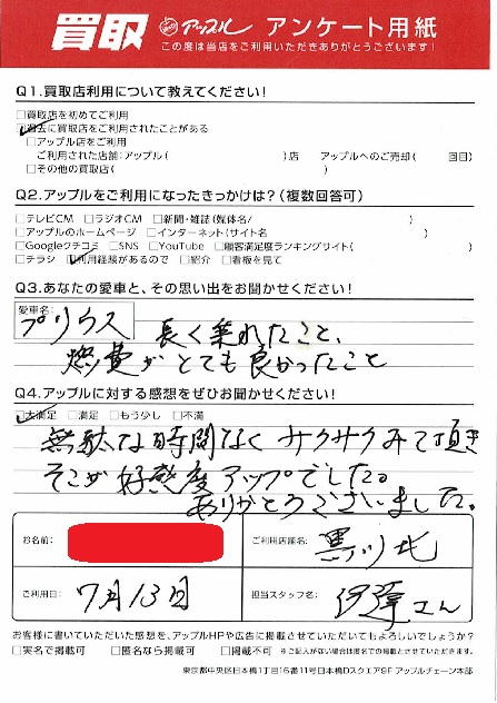 匿名希望プリウス様 車名:トヨタ プリウス(2023年3月~のPHVを含む)