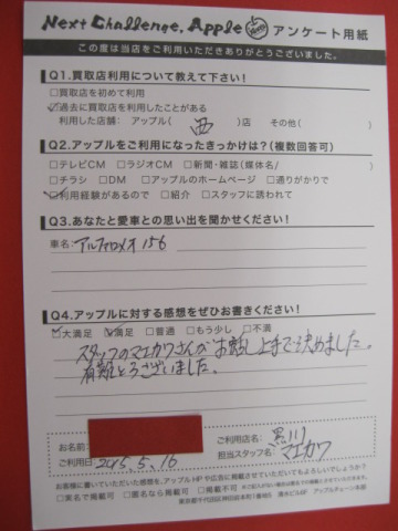 お車のご相談・ 査定だけでもOK! カンタン 入力 30秒 アップルがブランド買取始めました! お電話でも受付中! 受付時間10:00~19:00 ※毎週水曜定休日 052-508-9641 お車のご相談・ 査定だけでもOK! カンタン 入力 30秒 アップルがブランド買取始めました! お電話でも受付中! 受付時間10:00~19:00 ※毎週水曜定休日 052-508-9641 アップルがブランド買取始めました! お電話でも受付中! 受付時間10:00~19:00 ※毎週水曜定休日 052-508-9641 店舗情報 在庫車 スタッフ紹介 ブログ お客様の声 キャンペーン お得 無料査定 click お客様の声 ご記入日: 2015/05/16 Y.S様 スタッフのマエカワさんがお話し上手で決めました。有難うございました。 前へ 次へ お客様の声一覧を見る