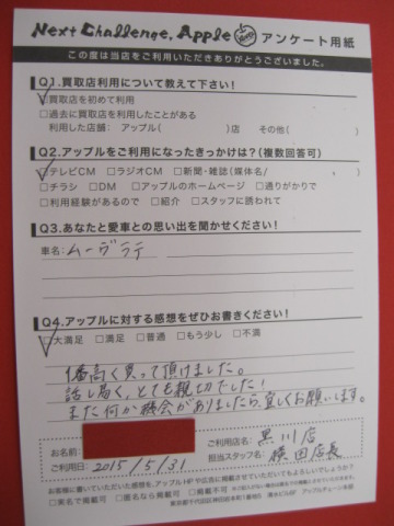 お車のご相談・ 査定だけでもOK! カンタン 入力 30秒 アップルがブランド買取始めました! お電話でも受付中! 受付時間10:00~19:00 ※毎週水曜定休日 052-508-9641 お車のご相談・ 査定だけでもOK! カンタン 入力 30秒 アップルがブランド買取始めました! お電話でも受付中! 受付時間10:00~19:00 ※毎週水曜定休日 052-508-9641 アップルがブランド買取始めました! お電話でも受付中! 受付時間10:00~19:00 ※毎週水曜定休日 052-508-9641 店舗情報 在庫車 スタッフ紹介 ブログ お客様の声 キャンペーン お得 無料査定 click お客様の声 ご記入日: 2015/05/31 A.I様 1番高く買って頂けました。話し易く、とても親切でした!また何か機会がありましたら宜しくお願いします。 前へ 次へ お客様の声一覧を見る