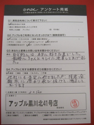 お車のご相談・ 査定だけでもOK! カンタン 入力 30秒 アップルがブランド買取始めました! お電話でも受付中! 受付時間10:00~19:00 ※毎週水曜定休日 052-508-9641 お車のご相談・ 査定だけでもOK! カンタン 入力 30秒 アップルがブランド買取始めました! お電話でも受付中! 受付時間10:00~19:00 ※毎週水曜定休日 052-508-9641 アップルがブランド買取始めました! お電話でも受付中! 受付時間10:00~19:00 ※毎週水曜定休日 052-508-9641 店舗情報 在庫車 スタッフ紹介 ブログ お客様の声 キャンペーン お得 無料査定 click お客様の声 ご記入日: 2016/03/12 K.M様 他社にも査定に行きましたが、接客・金額共に他より飛び抜けて満足しております。 前へ 次へ お客様の声一覧を見る