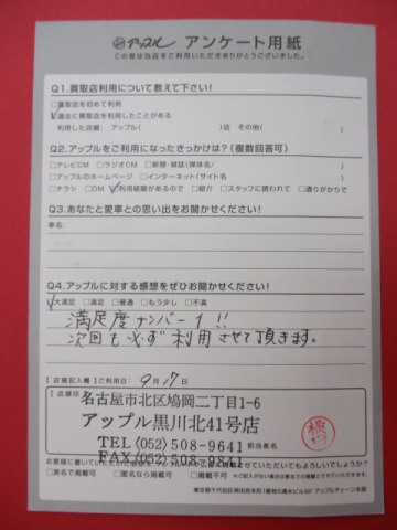 お車のご相談・ 査定だけでもOK! カンタン 入力 30秒 アップルがブランド買取始めました! お電話でも受付中! 受付時間10:00~19:00 ※毎週水曜定休日 052-508-9641 お車のご相談・ 査定だけでもOK! カンタン 入力 30秒 アップルがブランド買取始めました! お電話でも受付中! 受付時間10:00~19:00 ※毎週水曜定休日 052-508-9641 アップルがブランド買取始めました! お電話でも受付中! 受付時間10:00~19:00 ※毎週水曜定休日 052-508-9641 店舗情報 在庫車 スタッフ紹介 ブログ お客様の声 キャンペーン お得 無料査定 click お客様の声 ご記入日: 2016/09/17 K.M様 満足度ナンバー1!!次回も必ず利用させて頂きます。 前へ 次へ お客様の声一覧を見る