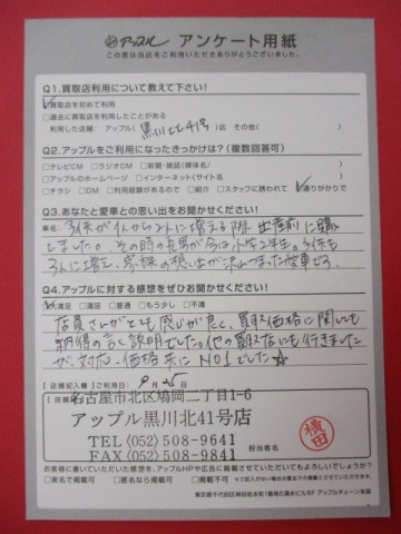 お車のご相談・ 査定だけでもOK! カンタン 入力 30秒 アップルがブランド買取始めました! お電話でも受付中! 受付時間10:00~19:00 ※毎週水曜定休日 052-508-9641 お車のご相談・ 査定だけでもOK! カンタン 入力 30秒 アップルがブランド買取始めました! お電話でも受付中! 受付時間10:00~19:00 ※毎週水曜定休日 052-508-9641 アップルがブランド買取始めました! お電話でも受付中! 受付時間10:00~19:00 ※毎週水曜定休日 052-508-9641 店舗情報 在庫車 スタッフ紹介 ブログ お客様の声 キャンペーン お得 無料査定 click お客様の声 ご記入日: 2016/09/25 Y.H様 店員さんがとても感じが良く、買取価格に関しても納得のいく価格でした。他の買取店にも行きましたが対応・価格共にNo.1でした☆ 前へ 次へ お客様の声一覧を見る