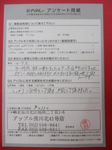 お車のご相談・ 査定だけでもOK! カンタン 入力 30秒 アップルがブランド買取始めました! お電話でも受付中! 受付時間10:00~19:00 ※毎週水曜定休日 052-508-9641 お車のご相談・ 査定だけでもOK! カンタン 入力 30秒 アップルがブランド買取始めました! お電話でも受付中! 受付時間10:00~19:00 ※毎週水曜定休日 052-508-9641 アップルがブランド買取始めました! お電話でも受付中! 受付時間10:00~19:00 ※毎週水曜定休日 052-508-9641 店舗情報 在庫車 スタッフ紹介 ブログ お客様の声 キャンペーン お得 無料査定 click お客様の声 ご記入日: 2016/09/11 I.T様 しっかりご説明をして頂き、対応して頂きました。 前へ 次へ お客様の声一覧を見る